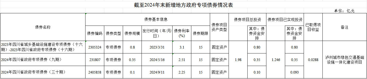 瀘州市公共交通集團(tuán)有限公司截止2024年末新增地方政府專項債券存續(xù)期信息公開